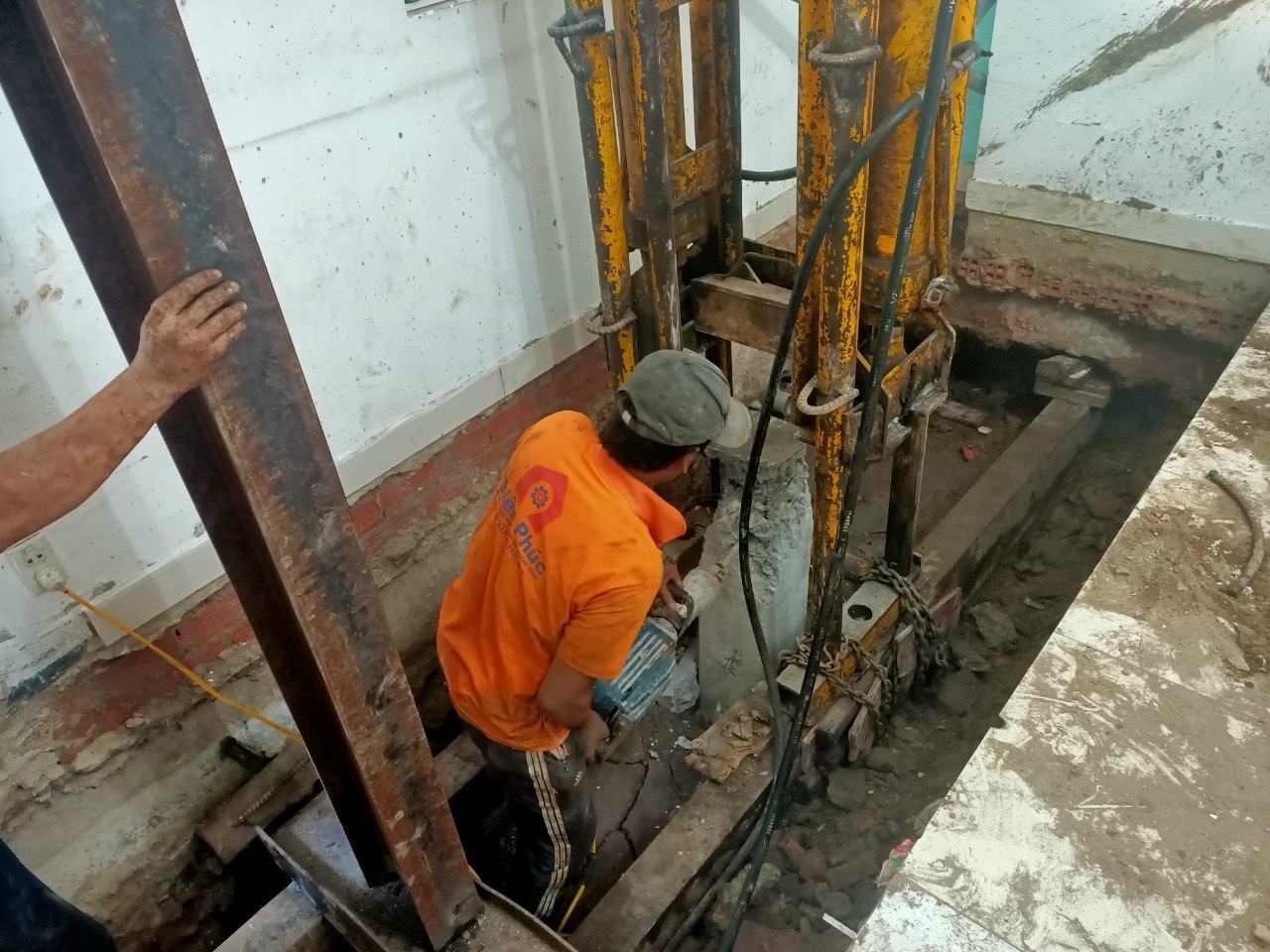 Hạng mục công việc này bao gồm việc ép 07 tim cọc bê tông gia cường móng, chống lún, chống nghiêng, nâng chỉnh nghiêng với độ nghiêng 28 cm. Đây là một công việc đòi hỏi sự chính xác và kỹ thuật cao, nhưng với đội ngũ kỹ sư và công nhân lành nghề của Thần Đèn Thiên Phúc, họ đã hoàn thành công việc một cách xuất sắc.